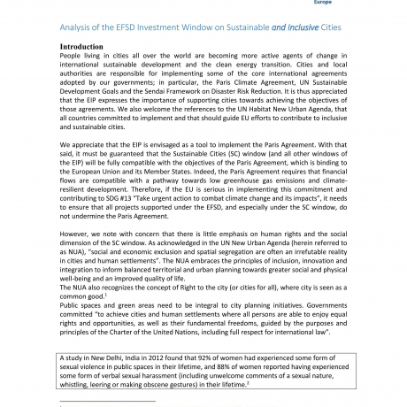 Analysis of the EFSD Investment Window on Sustainable and Inclusive Cities