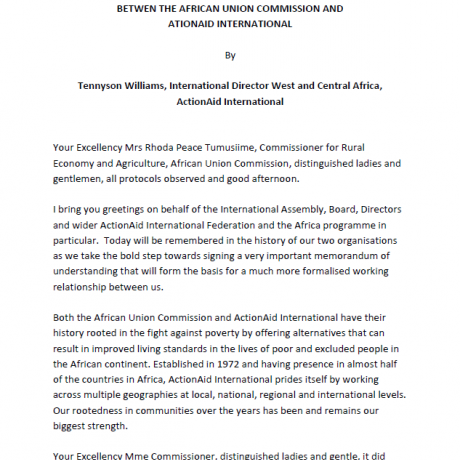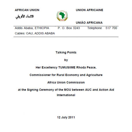 Taking Points by AU Commissioner for Rural Economy and Agriculture at the Sighing Ceremony of the MOU between AUC and ActionAid international