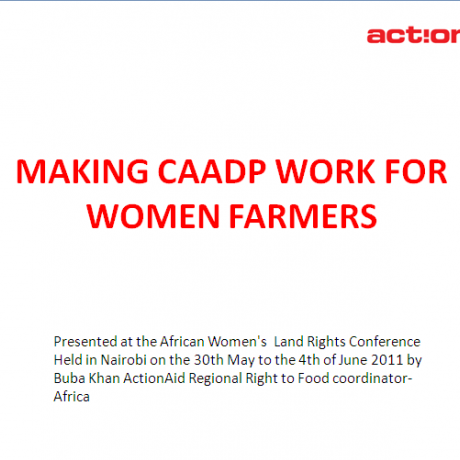 This is a presentation given by Buba Khan, ActionAid International's Africa Right to Food Coordinator, at the African Women's Land Rights Conference, held in Nairobi on the 30th May to the 4th of