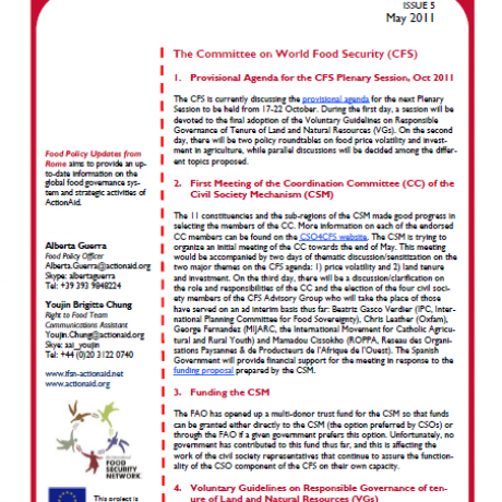 Food Policy Updates from Rome aims to provide an up-to-date information on the global food governance system and strategic activities of ActionAid.