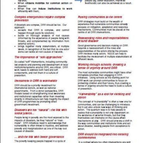 Six one page briefs outlining the key aspects of ActionAid's approach to Disaster Risk Reduction through schools. The briefs come from ActionAid's DFID-funded Disaster Risk Reduction through Schools