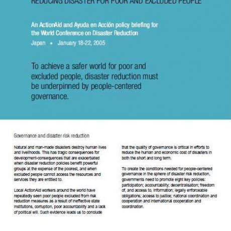 This briefing paper, produced ahead of the World Conference on Disaster Reduction, held in Japan in January 2005, outlines eight key strategies of people-centred governance and links these to the
